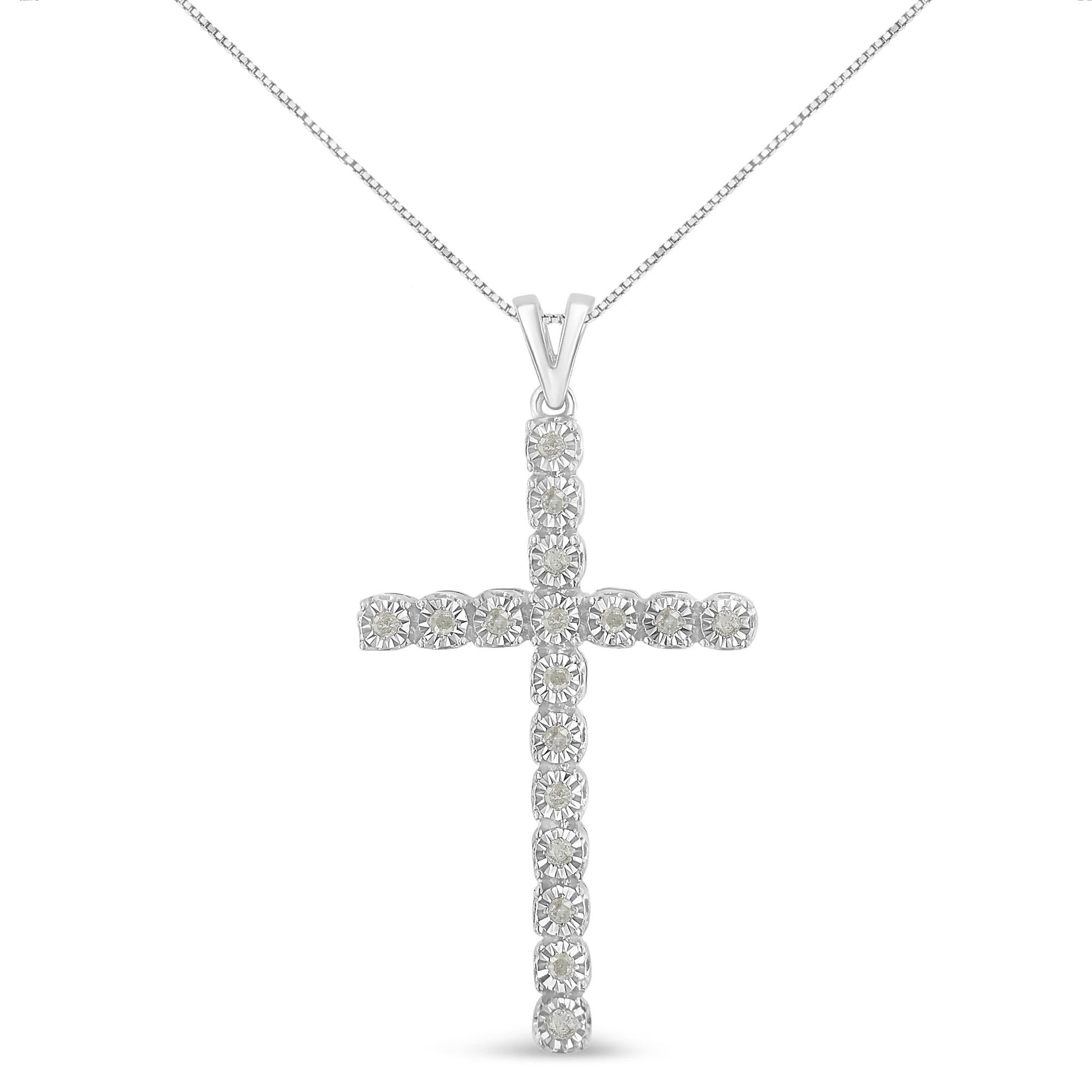 .925 Sterling Silver 1/4 Cttw Diamond Miracle Set Cross Unisex Pendant Necklace 18" (I-J Color, I3 Clarity)