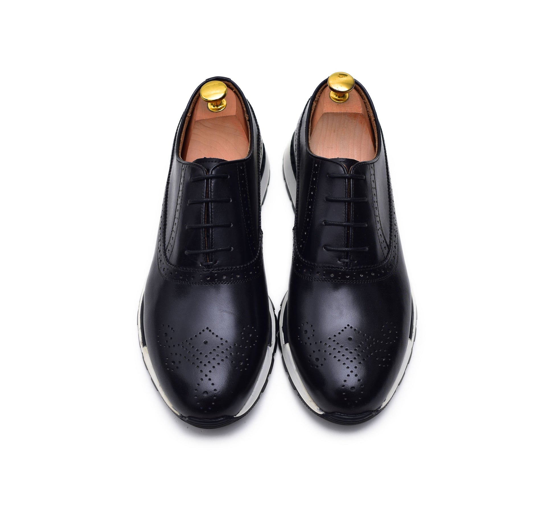 Enhance your wardrobe with these black dress sneakers for men, featuring classic brogue detailing and a sleek polished finish. Merging traditional oxford elegance with the comfort of a sneaker sole, these dress shoes are perfect for both formal and casual wear, delivering style and practicality for any occasion.