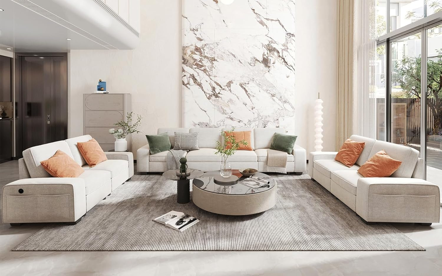 - Comfort Sofa Set: The sofa set inculds a 4-seat sofa and two loveseat sofa. Chenille fabric sofa covers are soft and comfortable. Big & thick sofa cushions and back pillows allow you to relax and enjoy life when you are sitting on the sofa.