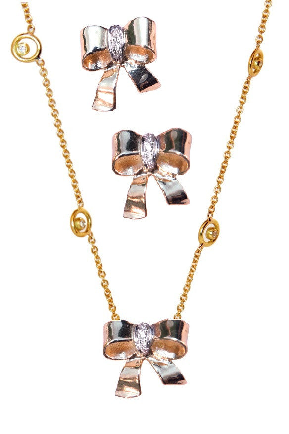Bow Necklace-Sterling Silver with diamonds on Karma chain with diamond dots