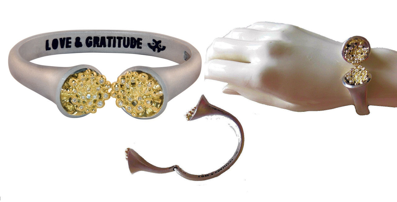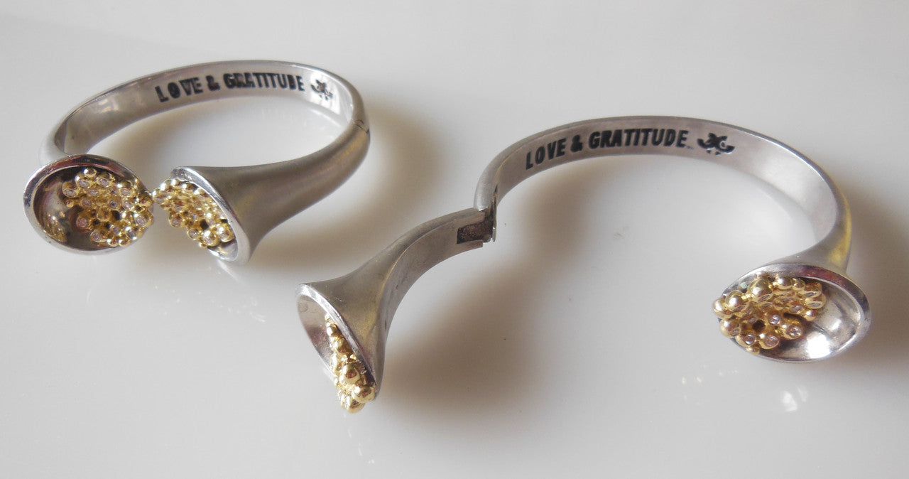 Bowl of Overflowing Diamonds Bracelet. Sterling cuff with 18K gold dots of diamonds