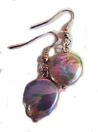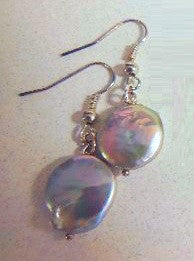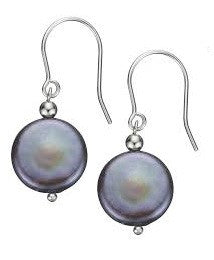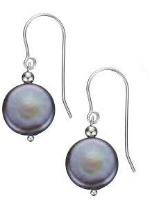 Grey coin pearls drop earrings on silver fishhook setting. This is a minimalist look, just the beauty of the pearls, the gift from the sea.