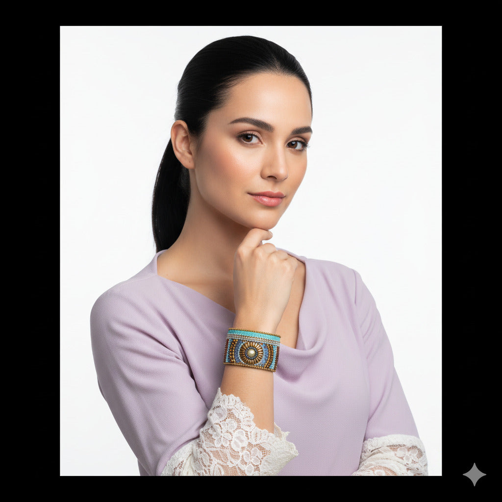 Colorful Bohemian Boho Seed Bead Loom Bracelet, Ethnic Large Cuff Bracelets For Women FBR1010