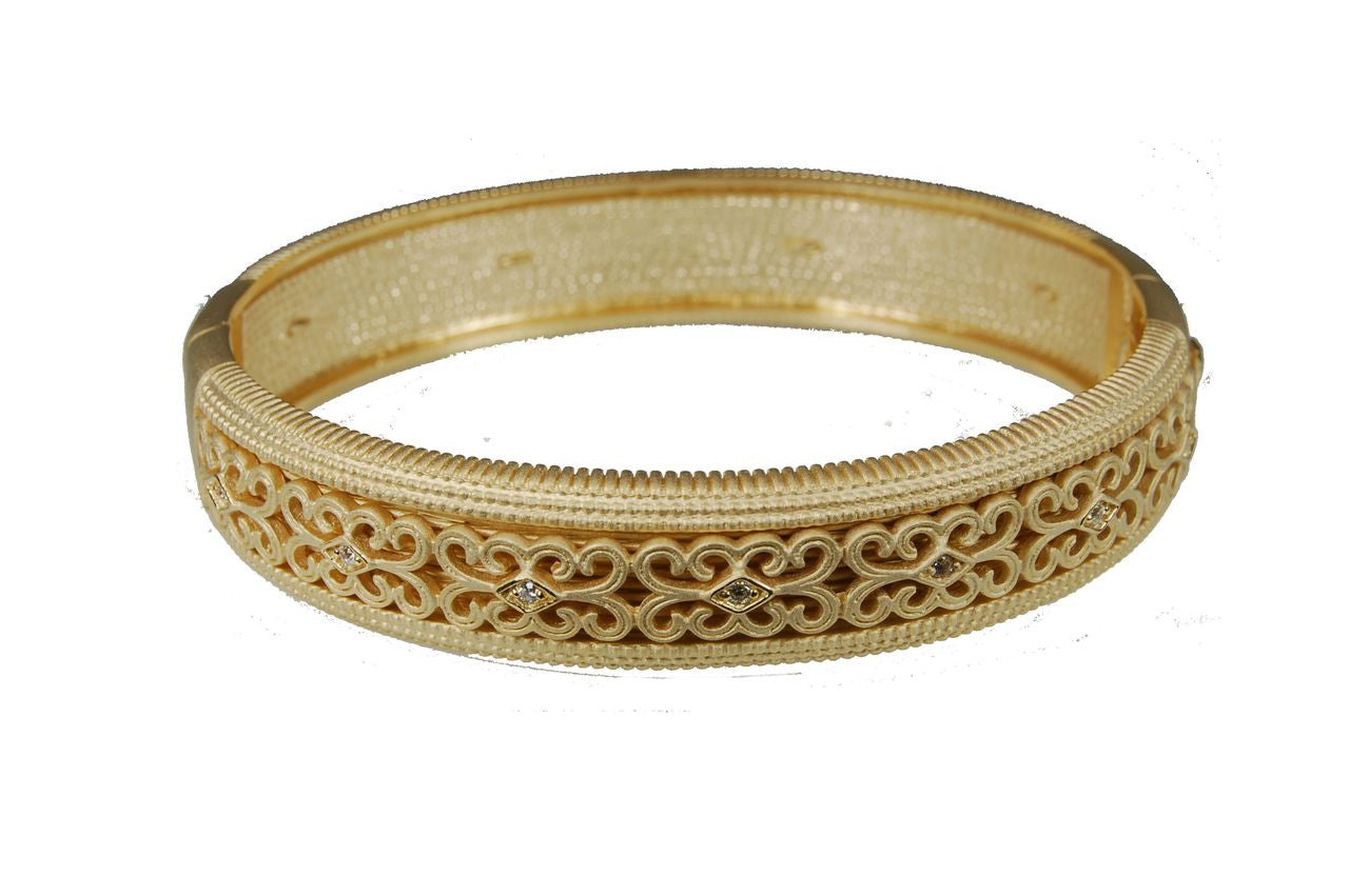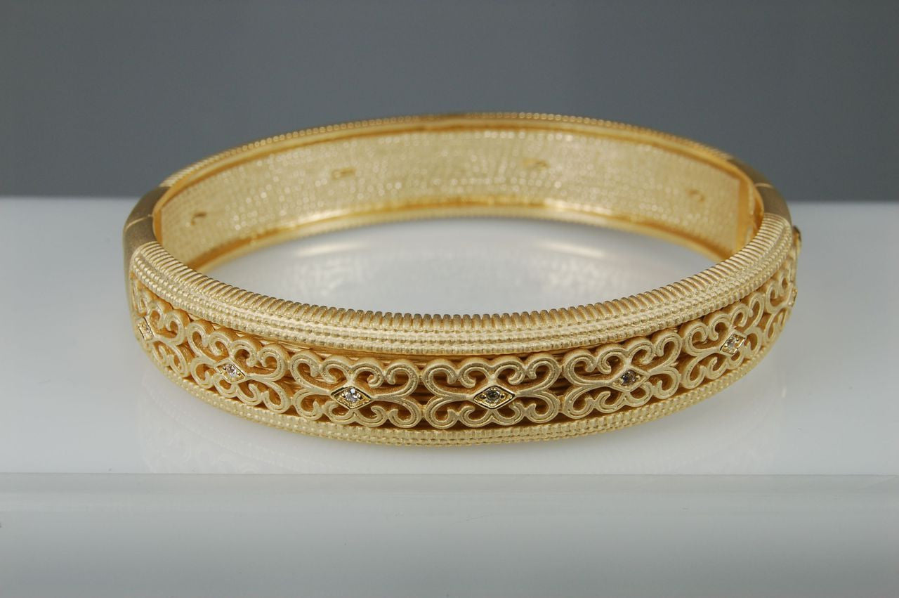 Portofino Dreams recreates their original designs in sterling silver, 18K gold plate and CZ's. Using the same quality of hand made workmanship, the end effect is the appearance of absolutely fine jewelry at a fraction of the price. This is oval with a hinge and safety catch.