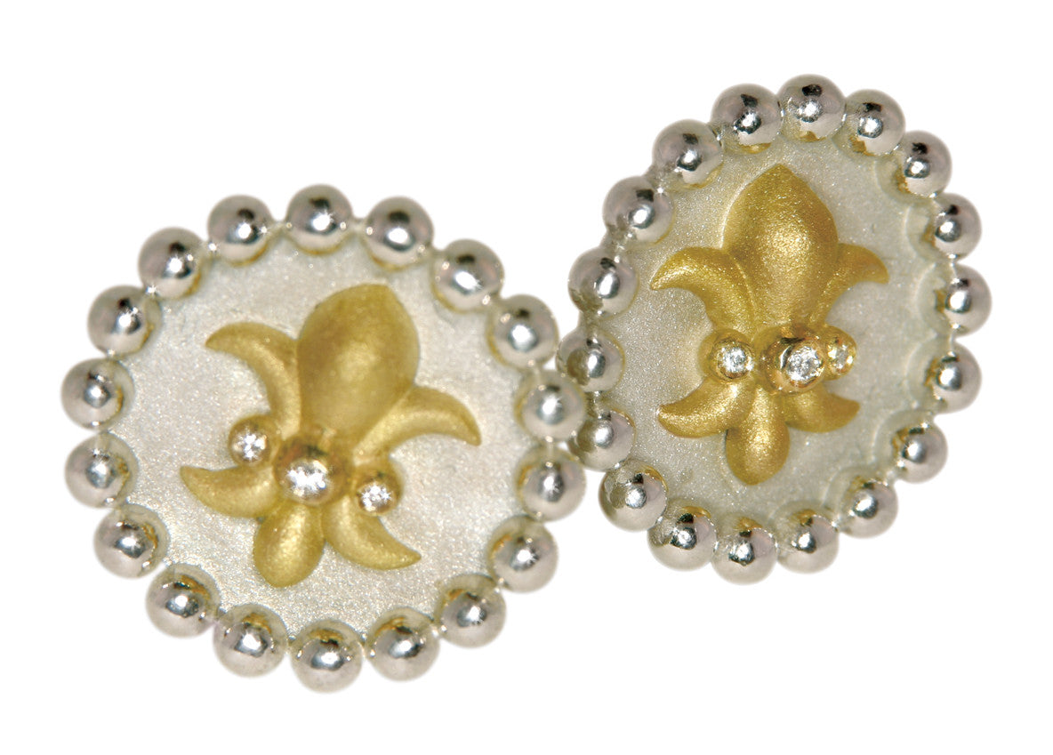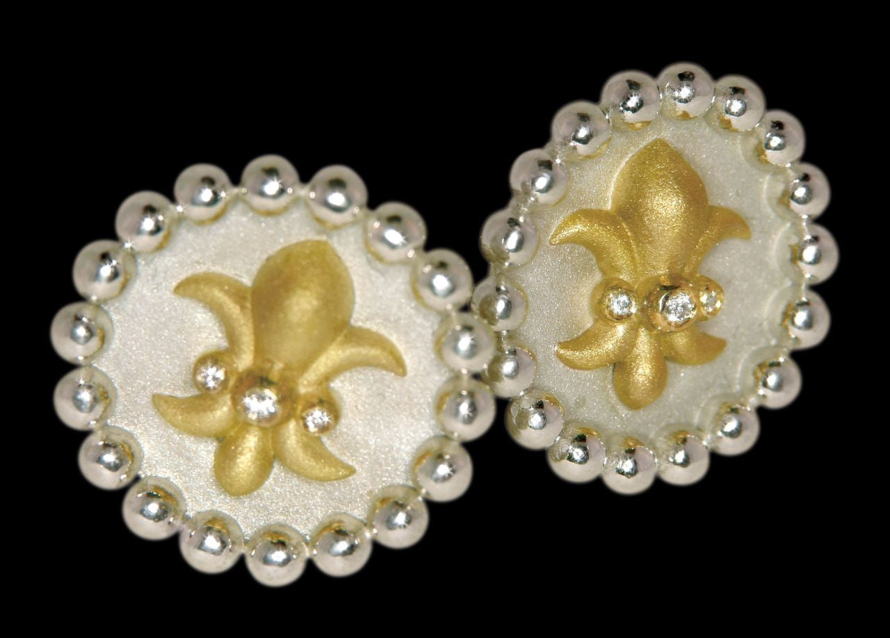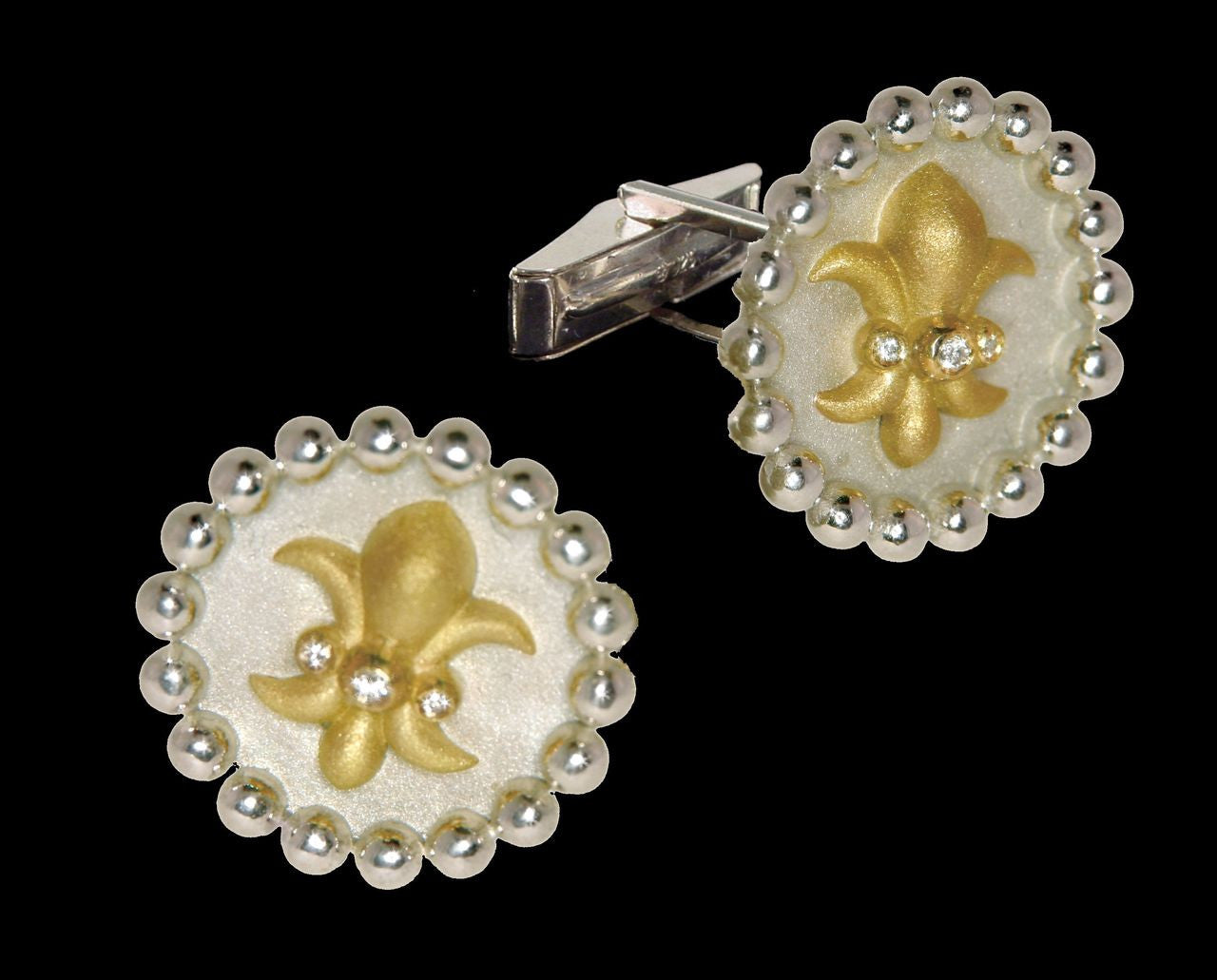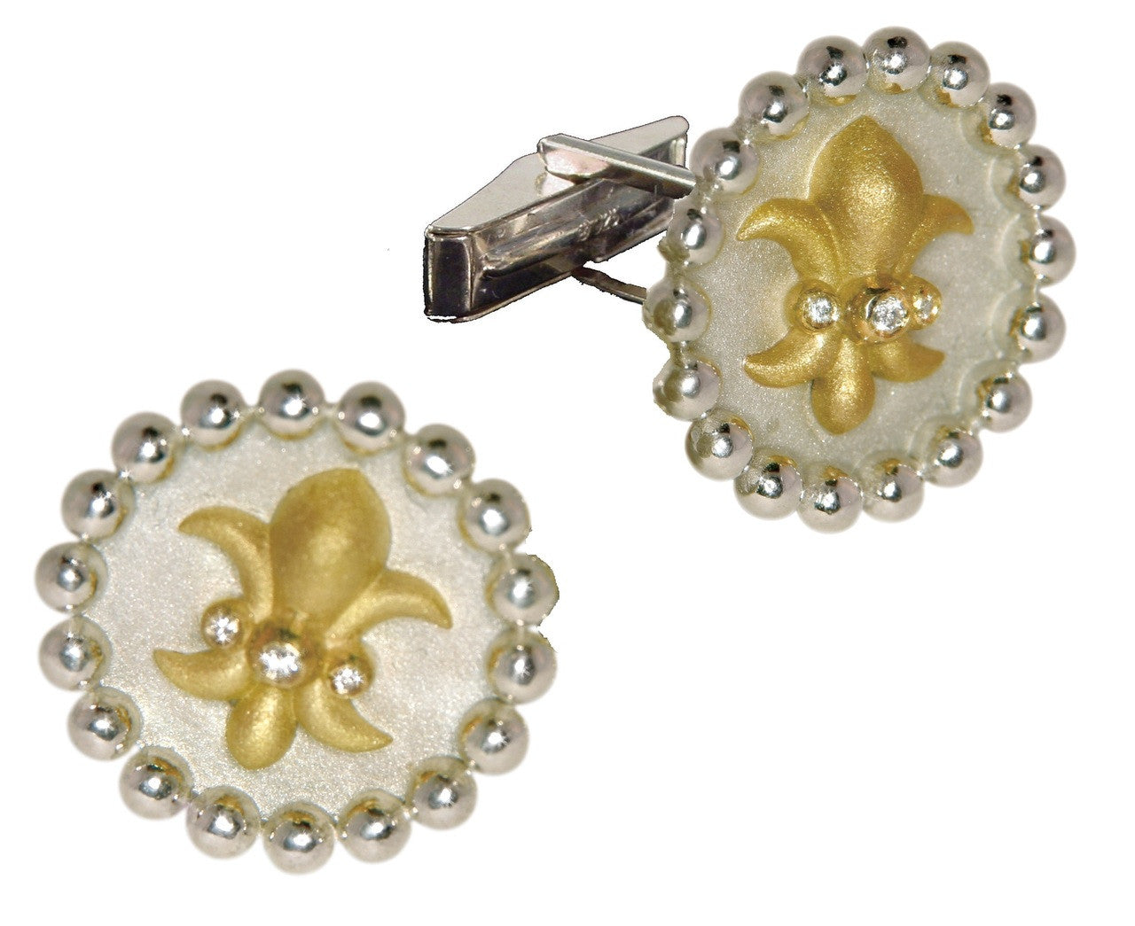 Fleur De Lis Cufflinks: Sterling Silver & 18K gold with Diamonds