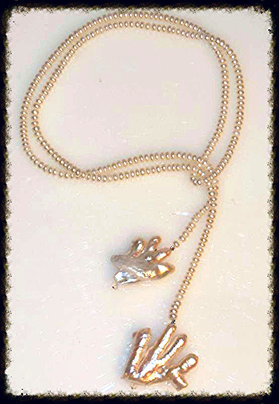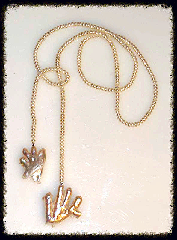 Freshwater hand pearls set on button pearls from China with gold plate beads.