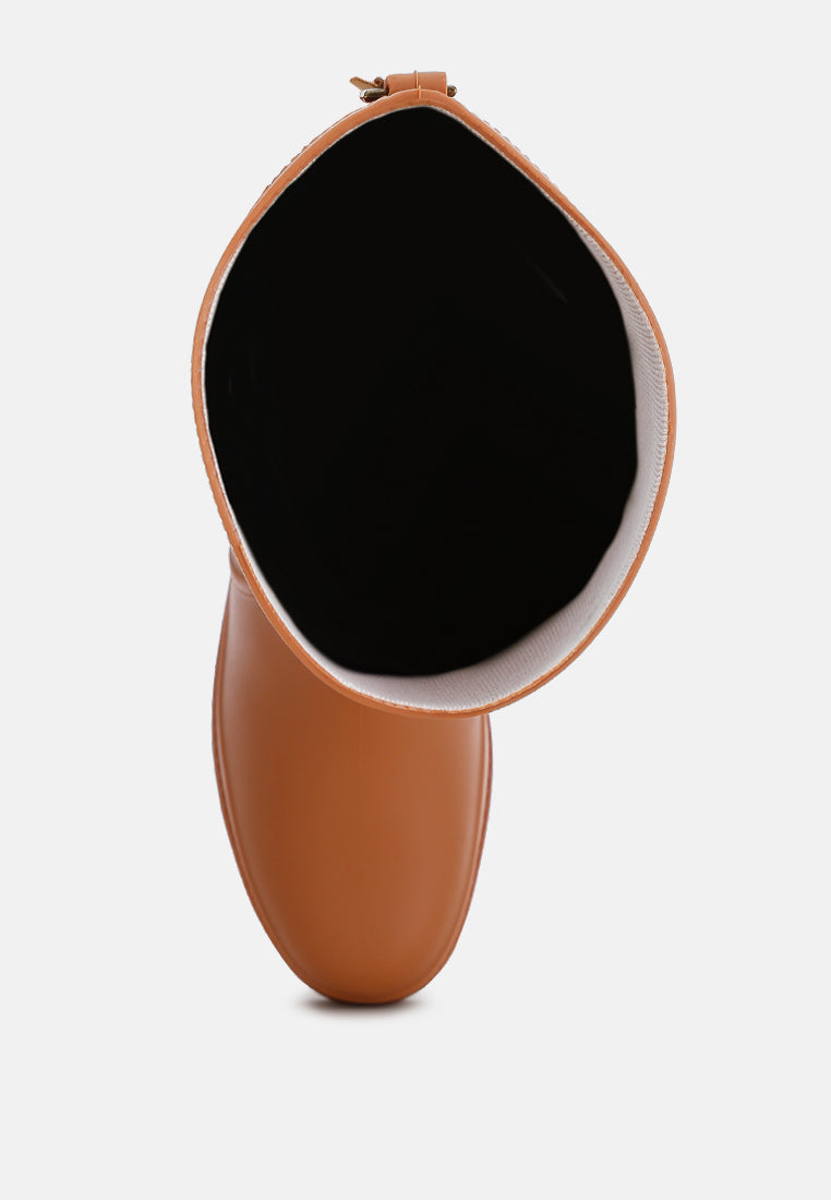Simplistic, versatile, and chic, the calf boots are a statement piece with their eclectic design that stands out! The rain boots make a bold statement by themselves and the charm detail adds an intriguing element to the design! The perfect addition to your monsoon wardrobe!