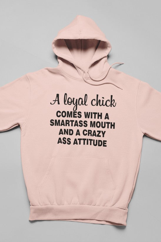 Stay trendy and chic with our Loyal Chick Hoodie digitally printed hoodie. Crafted with precision and love, this hoodie is a symbol of elegance and comfort. The digitally printed graphics add a contemporary flair to your outfit. Whether you're lounging at home or running errands, our Loyal Chick Hoodie hoodie is the ultimate blend of style and luxury.