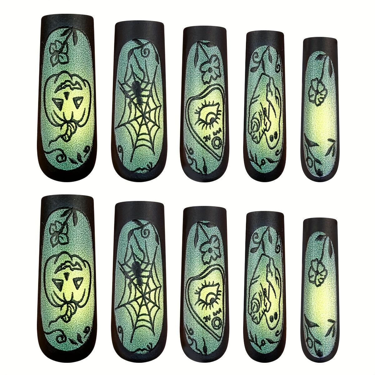 Our set not only combines fashion with function but also offers an opportunity to express your creativity. Whether you're dressing up for a spooky celebration or looking to add a fun twist to your everyday outfit, these nails are the perfect accessory.