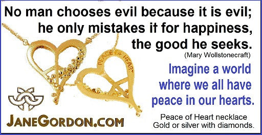 Wearing or holding physical manifestations of our core beliefs close to our heart acts as a talisman, a touchstone, supporting our message, both for ourselves and to the world. Often the jewelry, which is worn for beauty, also open conversations, allowing us to subtly lead to a better place.