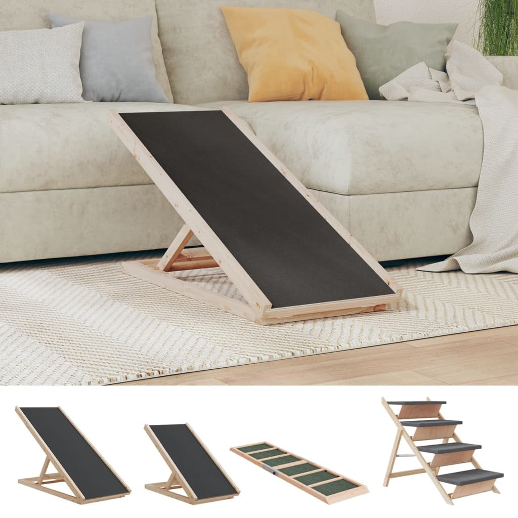 vidaXL Dog Ramp Foldable Adjustable Canine Ramp for Car Bed Solid Wood Fir